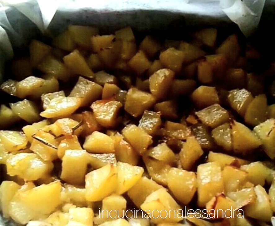 The procedure is very simple: peel and wash the potatoes, cut them into pieces, and pat them a little dry with paper towels. Line a baking tray with parchment paper. Place the potatoes on the tray, season with salt and pepper, add a drizzle of oil. Chop the rosemary or leave the leaves whole as you prefer, add the rosemary leaves and mix well with your hands. Bake in a preheated oven at 356°F for about 40 minutes; cooking time also depends on taste: those who like them soft will leave them a little less, while those who like them crispy will leave them a bit longer.