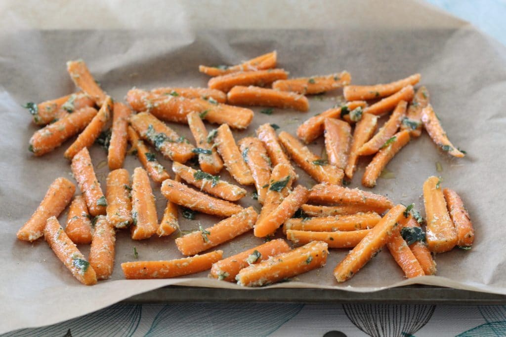 The oven-baked carrot sticks are an easy and quick side dish to prepare. The carrots will be very sweet and pair perfectly with grated Parmesan cheese, which is more flavorful, and various herbs such as sage, thyme, and rosemary, chopped parsley, and dried oregano. It’s a perfect side dish to pair with meat and fish dishes. It is an excellent dish for vegetarians or for children, who might eat vegetables more willingly this way. If you can, cut the carrots as thin as possible for extra crispiness. If you like carrots, you can also try: