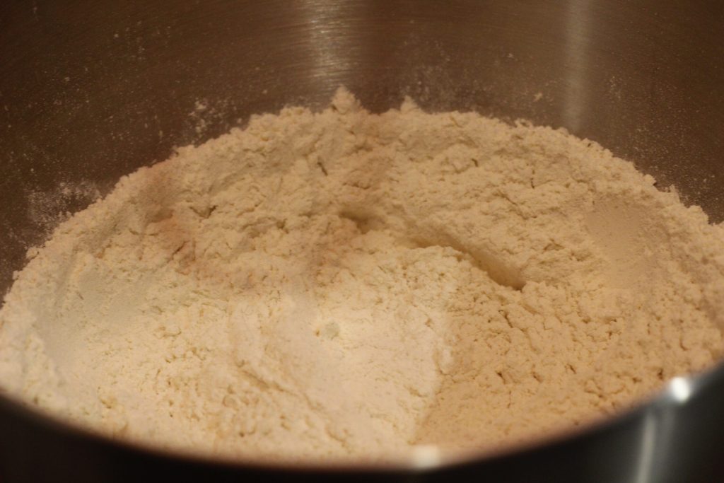 • To prepare the rose cake, first keep the butter out of the fridge for at least a couple of hours before using it; it should be soft like an ointment. Put the sifted all-purpose flour and Manitoba flour and the yeast in the stand mixer and start mixing with the hook whisk. Now add the liquids, first the whole milk in a thin stream and then the eggs, one at a time, preferably already beaten in a small bowl.