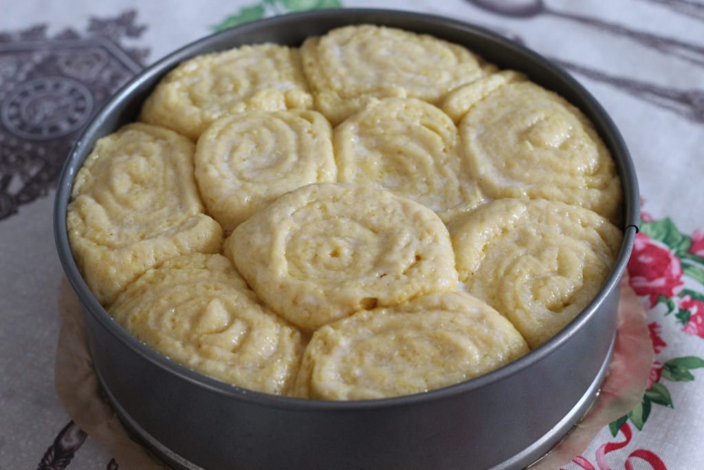 • Cut the rolls into slices about 2 inches thick. Now place the rolls on parchment paper in a 9-inch springform pan, spacing them slightly. Cover with plastic wrap and let rise for another hour in a turned-off oven with the light on. Once risen, brush each rose’s surface with milk and preheat the static oven to 356°F and then bake for 40 minutes.