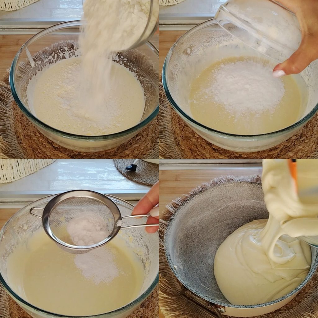Add a pinch of salt and the flour little by little. Add the potato starch, and continue to work everything for 5 minutes until you get a lump-free mixture. Finally, add the sifted baking powder to ensure regular rising during cooking. Work for a few seconds ensuring the baking powder is well distributed throughout the dough. Butter and flour a round mold of 9-10 inches in diameter, or line it with parchment paper. Pour the dough into the mold and level the surface with a spatula. Bake in a preheated ventilated oven at 338°F for about 30 minutes. Always check the cooking by inserting a toothpick in the center of the cake.