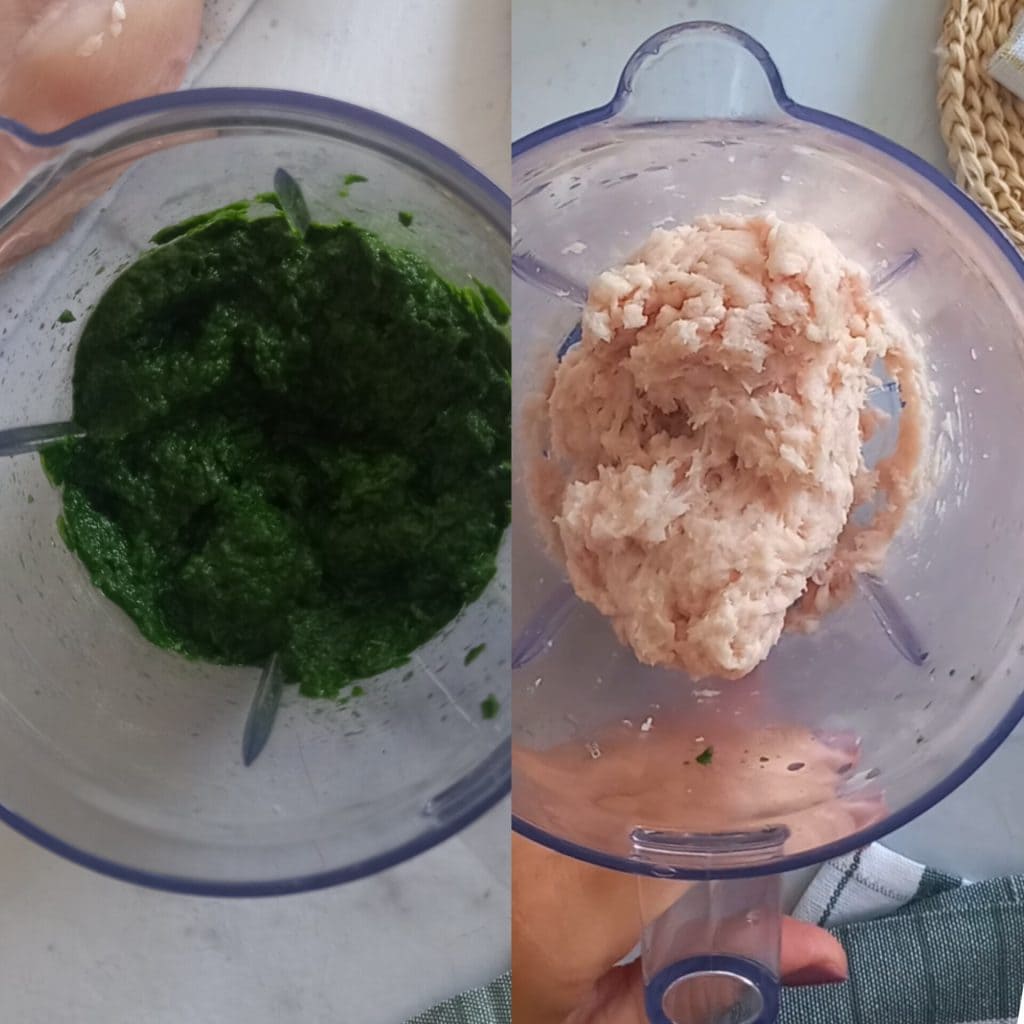 Once cooled, take a blender, chop the spinach, and then the chicken piece.