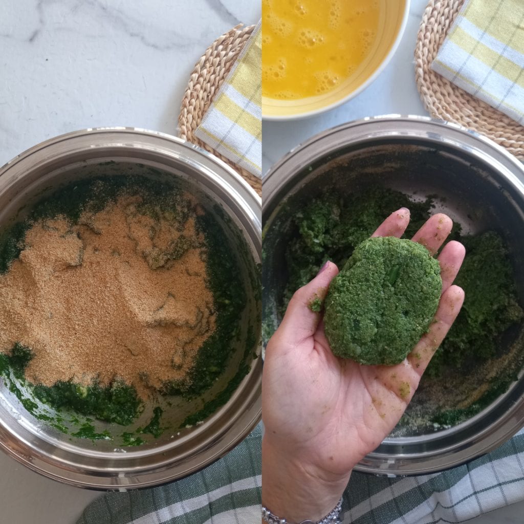 Once ready, dip each cutlet first in beaten egg, then in breadcrumbs, using a fork to avoid breaking them.