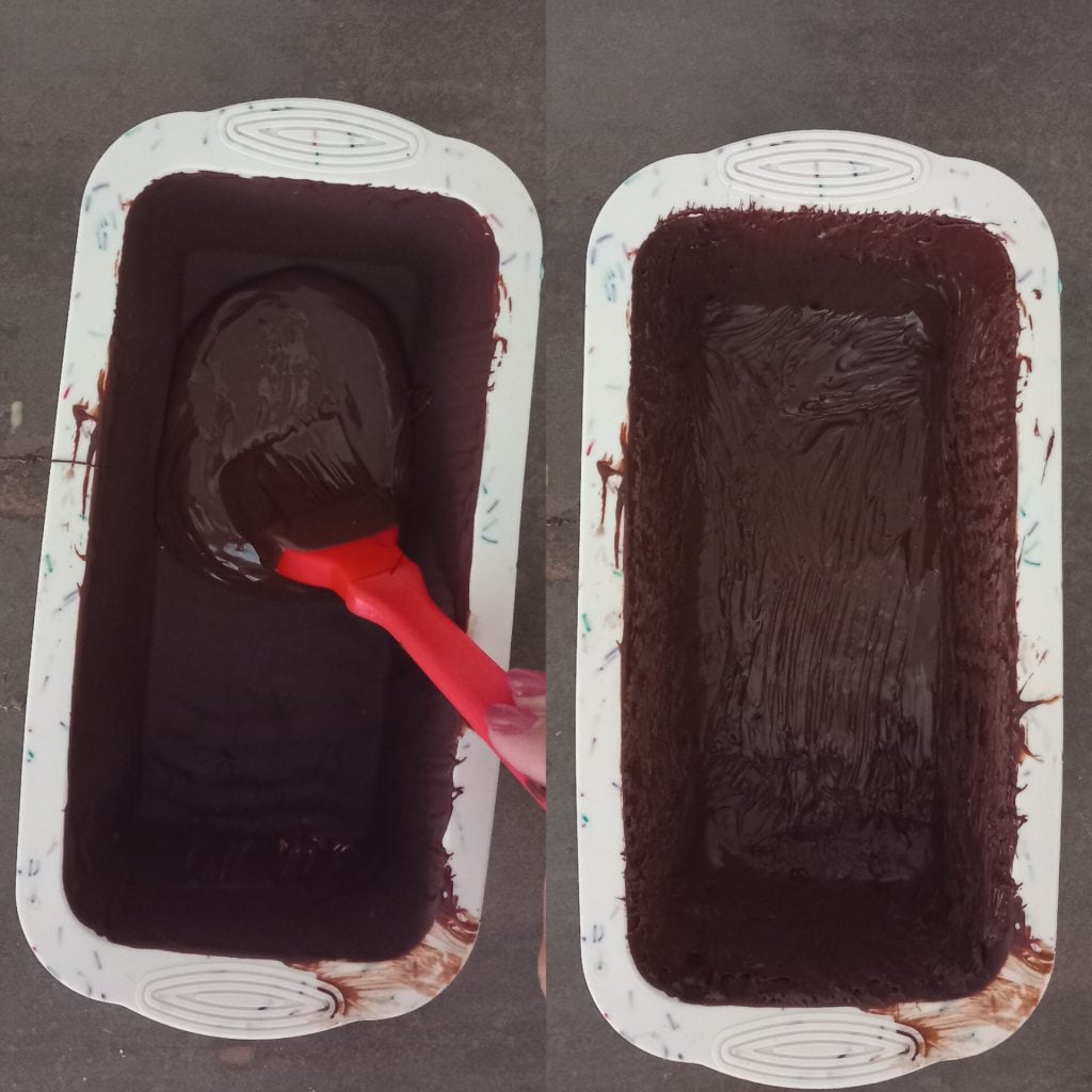 • Take a silicone loaf pan and spread the melted chocolate on the bottom and sides using a kitchen brush. Put it in the freezer for 10 minutes. Take the mold and repeat the operation with the melted chocolate to form a second layer. Put it back in the freezer for another 10 minutes.
