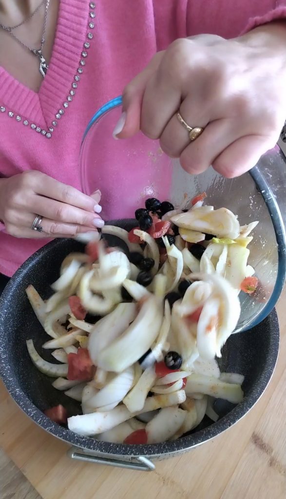 Today I present the recipe for baked gratinated fennel with cherry tomatoes, olives, and breadcrumbs; a simple and flavorful side dish to accompany fish, meat dishes, or to enjoy as a light and tasty dinner. The sweetness of the fennel, the freshness of the tomatoes, and the addition of olives give this dish a delicate and flavorful taste. To add an extra touch, I added breadcrumbs for a crunchy note that makes this side dish even more inviting.