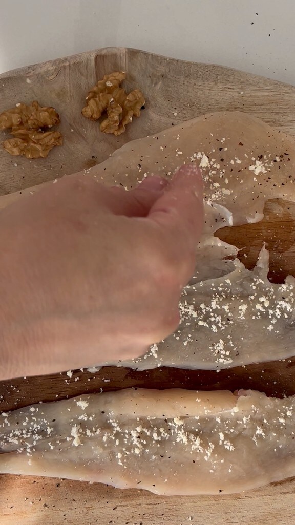 The Chicken Bombettes with Walnuts, Honey, and Smoked Cheese is a main course that is very simple and tasty to prepare for any occasion. It’s really easy to make and especially delicious. Chicken is one of the most loved and used meats in cooking, especially for diet regimes. It naturally depends on the seasoning and the quantity consumed. In this case, I stuffed thin slices of chicken with a very thin slice of smoked cheese, a walnut kernel, and a drizzle of honey, rolled them up, breaded them, and cooked in the oven. So definitely lighter than the classic Puglian Oven Bombettes. In this case, the meat is very thin and contains very little seasoning.