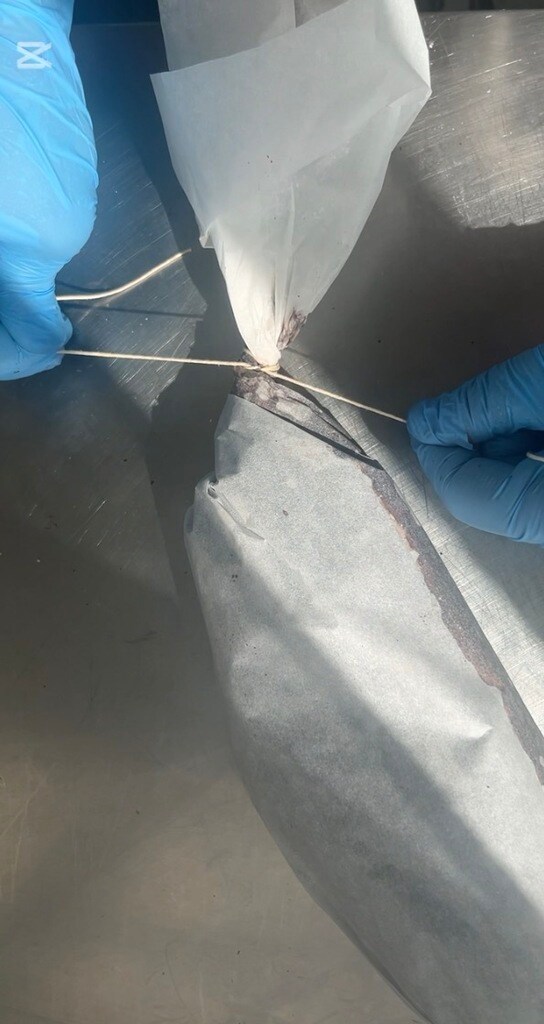 Tie the ends with string and let it set in the fridge for at least 3 hours. It’s best if prepared in the evening and left to set overnight.