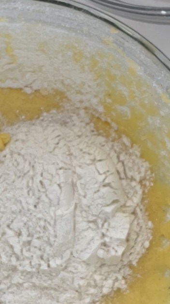 • After incorporating the butter well, add the sifted flour. Add it in two parts