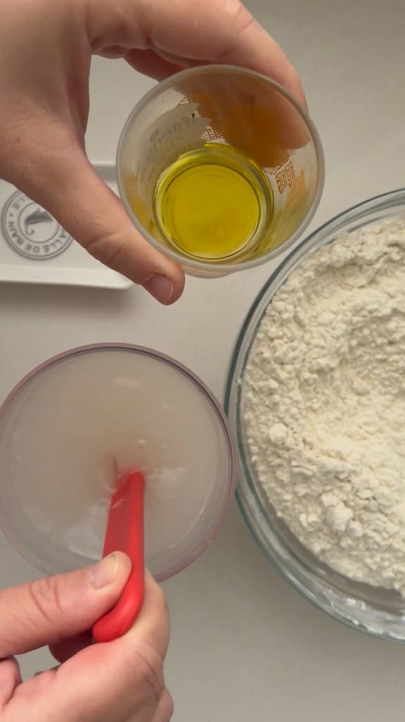 Immediately pour everything into the flour.
