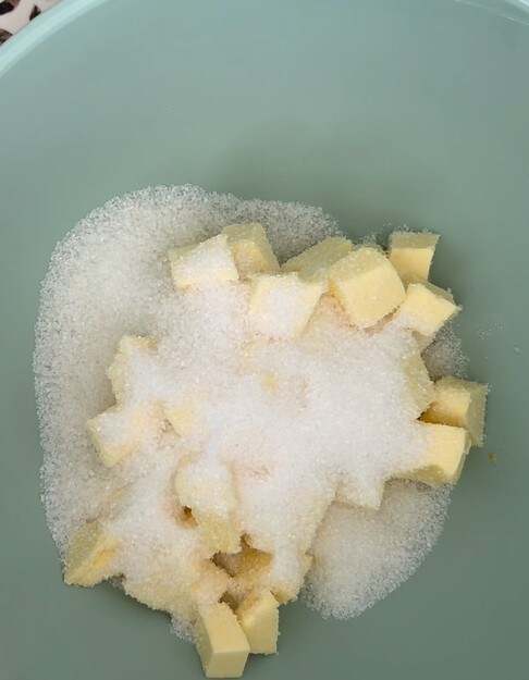 In a bowl, combine the butter and sugar to prepare the shortcrust