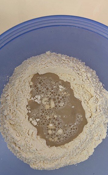 Start by putting the flour in a tall bowl, so you can work the dough well. Make a hole in the center