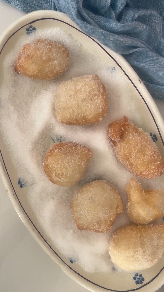 Well friends, today I am going to tell you about one of the most well-known traditions of my beloved Taranto and give you the foolproof recipe for real Tarantine pettole, no potatoes, no milk, just water, flour, and yeast, Pettole original Tarantine recipe by Grandma Rosa. Here on this blog, you’ll find many valid recipes related to pettole, even savory ones like these Savory Puglian Pettole traditional recipe but let me say that this one from my grandma really takes me back many years. Those from Taranto can understand me. Pettole are prepared on the day of Saint Cecilia, I, naturally, as a good food blogger, am giving you this recipe ahead of time so you can read and study it well. Yes, study it, because certain traditions are part of the cultural heritage of many cities and should never, ever be abandoned. They are passed down from mother to daughter, and it’s good to hold onto them. I’ll share my personal experiences regarding the day of Saint Cecilia when I was very young. A morning different from others, where you wake up, and in the silence of the early morning, you listen to the pastoral songs, but mostly you’re captivated by that smell. I remember my mother and grandmother waking up very early around 5 in the morning to prepare all the ingredients with love, and I especially remember the sound of these movements, like slapping the dough, which gradually took shape in their hands. Well, those slaps were the sweetest I had ever heard. I, hidden outside the kitchen, watched everything and admired them as they carefully and lovingly covered and cuddled that dough to let it rest cozily for many hours. The happiness in waiting to hear that noise and smell of frying, the good one, seeing these golden balls reappear in the oil, fulfilled the wait. It was 10 in the morning, and we were there as a family, happily waiting for these wonderful randomly shaped balls, yes, because they never came out perfectly round, very crispy outside and soft inside. Immediately passed from oil to granulated sugar. Here are the real Pettole tarantine.