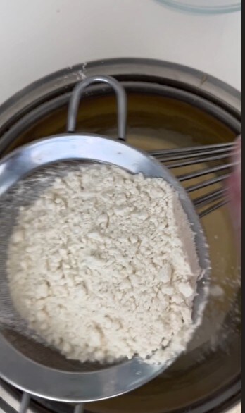 Sieve the flour and add it to the eggs.