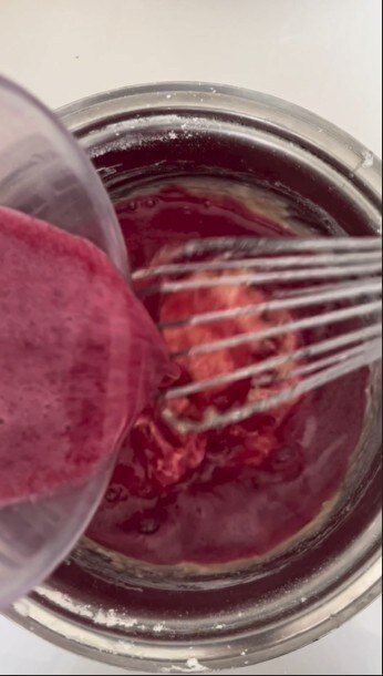 Pour in the strained pomegranate juice and