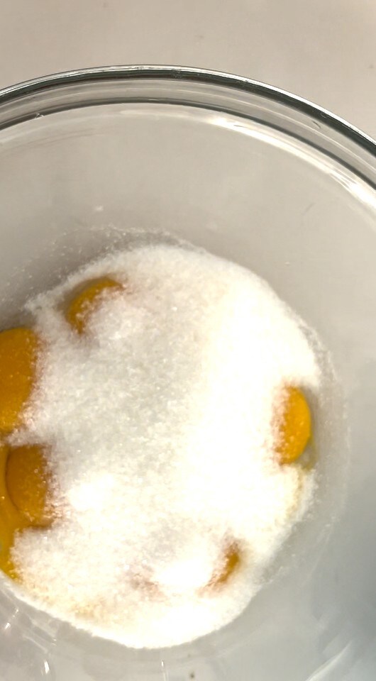 • At this point, the milk will be boiling, and you can add it to the bowl with the eggs.