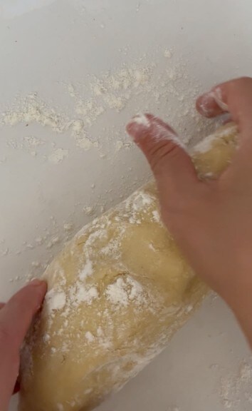 transfer to the work surface and work until you get a smooth and compact dough that we will let rest in the fridge for 30 minutes,