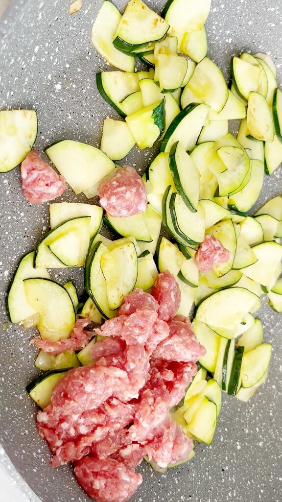 when the zucchini becomes soft, add the sausage