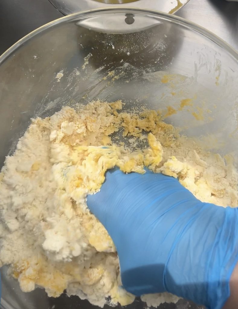 7) Another tip I give you is this: after resting, before rolling out the dough, break it up and quickly rework it. This step will make it more elastic and easier to handle.