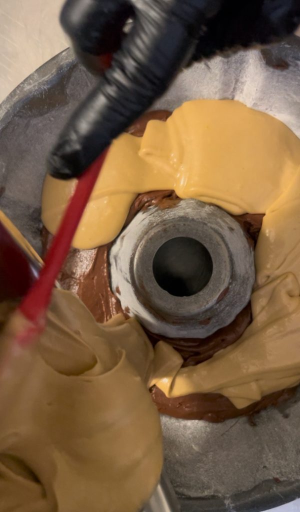 • At this point, pour the cocoa batter into a greased and floured mold.