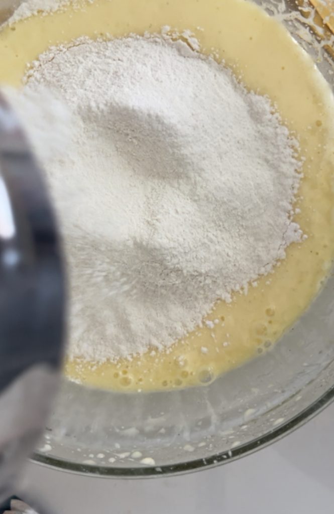 • and the sifted flour with the baking powder