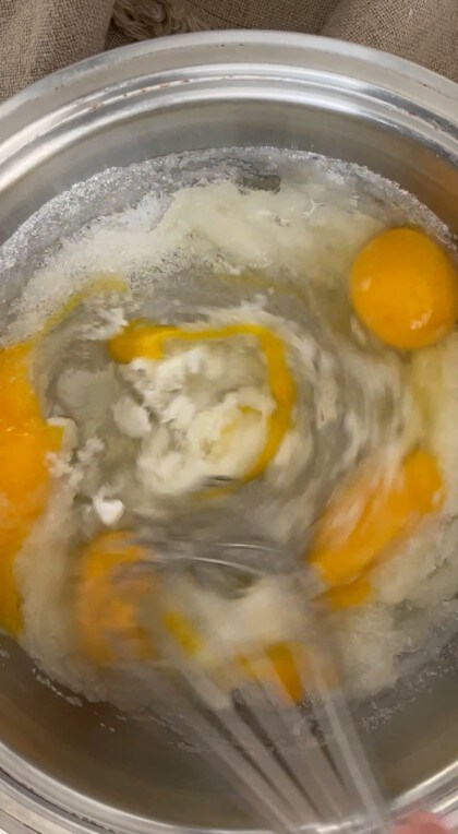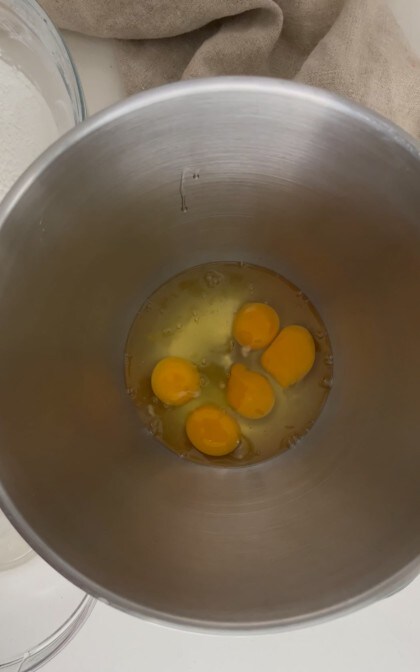 Put in the fridge and start preparing the dough for the monache’s breasts. In the stand mixer, insert the eggs,