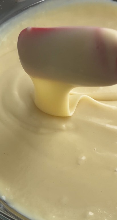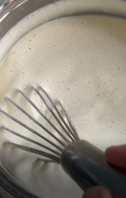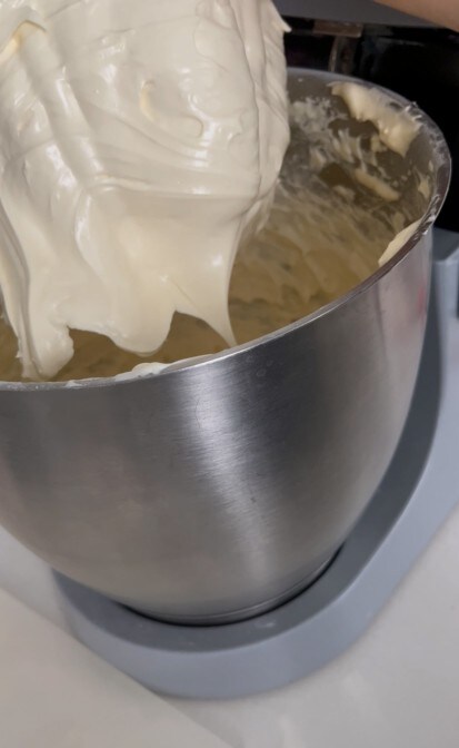 In the meantime, whip the cream to stiff peaks and gently fold it into the custard with slow movements from bottom to top.