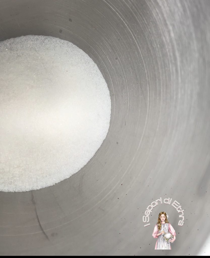 The first thing to do is make the pastry dough. In the stand mixer, add the sugar.