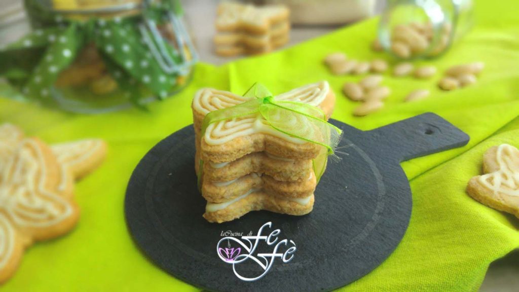 Lately, I have rediscovered my love for homemade cookies, or rather the joy of kneading them and creating different varieties! Using the famous dough from the baked pistachio and chocolate chiacchiere, I made some small modifications, adapting the procedure to create these really sophisticated and delicious butterflies! I removed the pistachio flour and the egg white and replaced part of the flour with almond flour. The cinnamon liqueur also gives the cookies a really pleasant aromatic note, so much so that my husband explicitly asked me to make them for him three more times! Finally, the dark chocolate frosting was replaced with white chocolate, which goes excellently with the rest of the ingredients! In short, they will make perfect cookies for any occasion, for tea-time or to enjoy at the end of a meal, perhaps sipping the same liqueur with which they are made! They are also very wholesome, as they contain very little butter, only 2 ounces for the entire dough! Another reason to prepare and savor them without too much guilt, don’t you think?