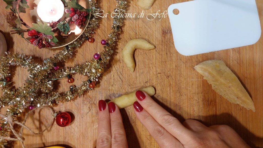 • Shape them gently to avoid breaking them, trying to curve them like a horseshoe, keeping the center of the kipferl more rounded than the ends.