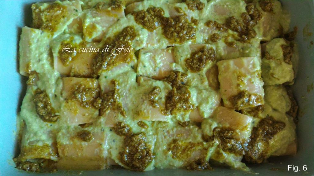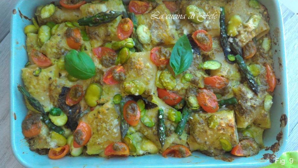 • Cover with more asparagus pesto and robiola and a few spoonfuls of Genovese pesto here and there.