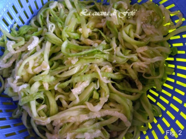 Salt the zucchinis and place them in a colander to rest for about 30′ so they lose their water content.