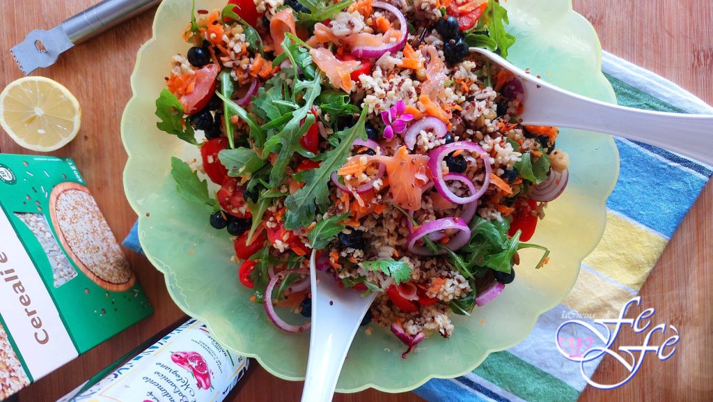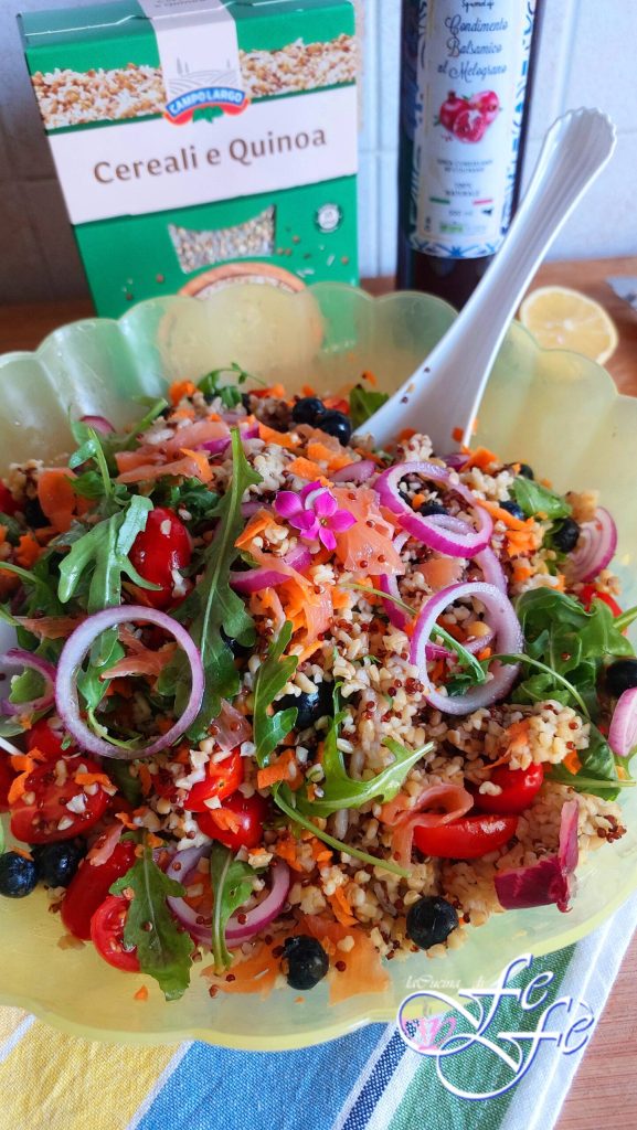 Continuing my usual series of cold first courses. I often propose bulgur and quinoa, because, in addition to having many of the beneficial properties sought within a healthy and balanced diet, they are also perfect substitutes for pasta. Being both rich in minerals and low in fats, they are suitable for the whole family! So, if like me, you love these super summery and versatile dishes, but above all unique, perfect to enjoy at the beach under the umbrella, staying very light, you absolutely must try this bulgur, quinoa, and grain salad! I’m telling you, you will fall in love with it! The advantages are many, first of all, the fact that the ingredients are added raw, even the bulgur and quinoa have been steamed, so zero hassle and commitment at the stove! Another advantage is that you can prepare it in advance and take it with you to the beach, on a trip, to the office, or propose it at an informal outdoor buffet. A convenience for those who always complain about not having enough time available! You will see that in a few simple steps you will bring to the table a light, fresh, and healthy dish with the approval of all your guests!