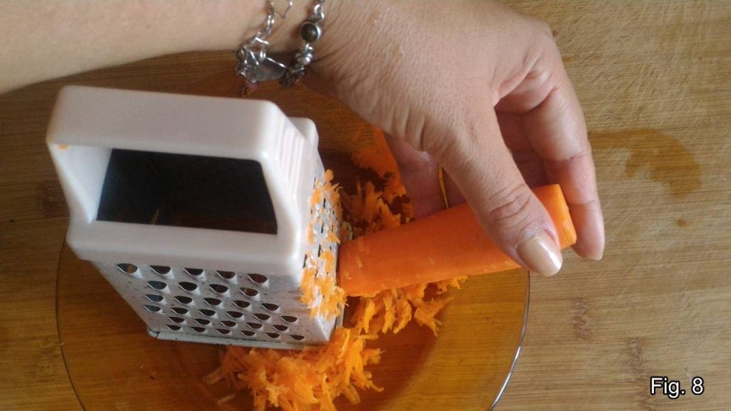 Separately, grate the carrot and add it to the rest of the ingredients (fig. 8 and 9).