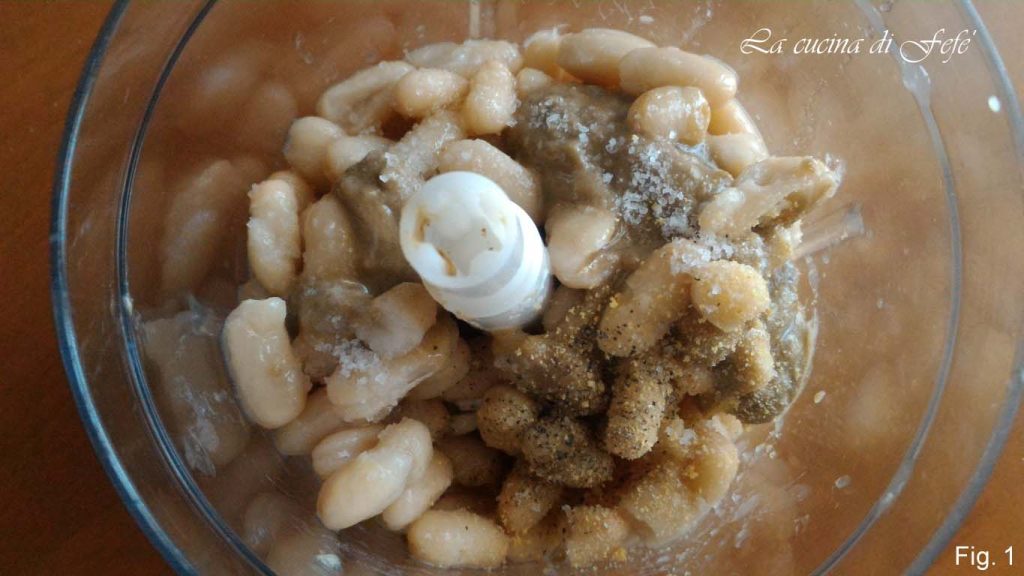 Place the cannellini beans, tahini, olive oil, salt, and your preferred herbs in a blender, in my case rosemary (fig. 1)