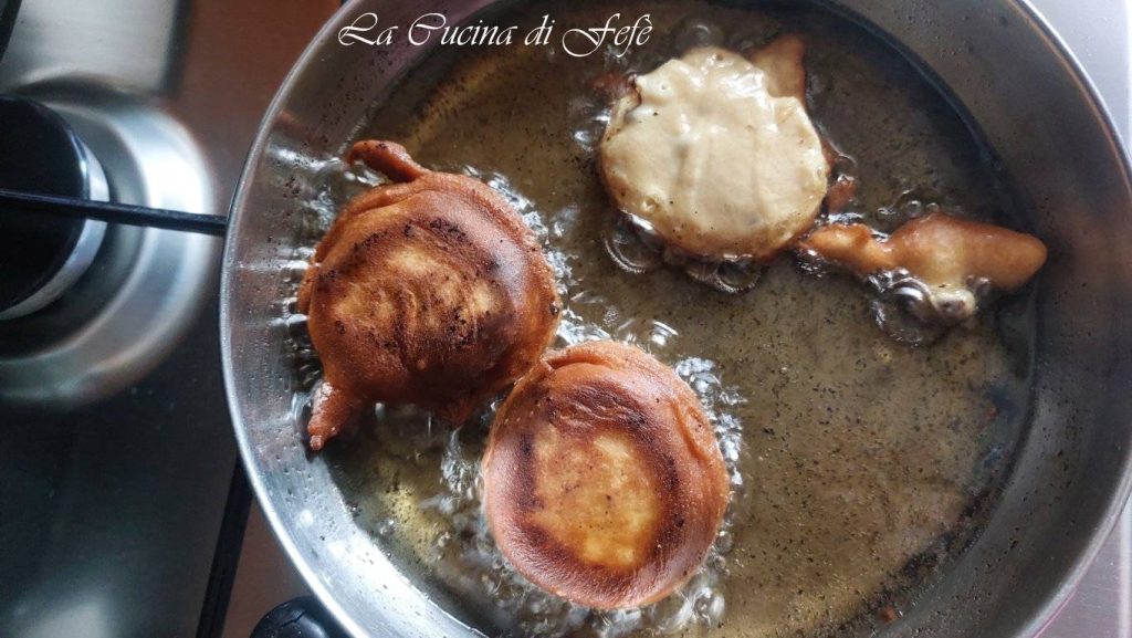 In a high-sided pan, bring plenty of oil* to a temperature of 320-338°F**. Using two slightly wet spoons, take small portions of dough*** and immerse at most 2-3 at a time so as not to lower the oil temperature too much. Fry over low heat for 2 minutes, then turn them and complete cooking.