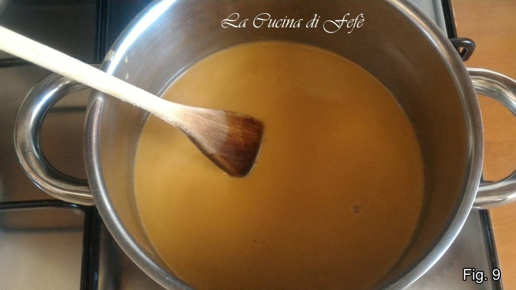 Cook over low heat, stirring continuously with a wooden spoon, always in the same direction until it has the consistency of a cream (fig. 10).