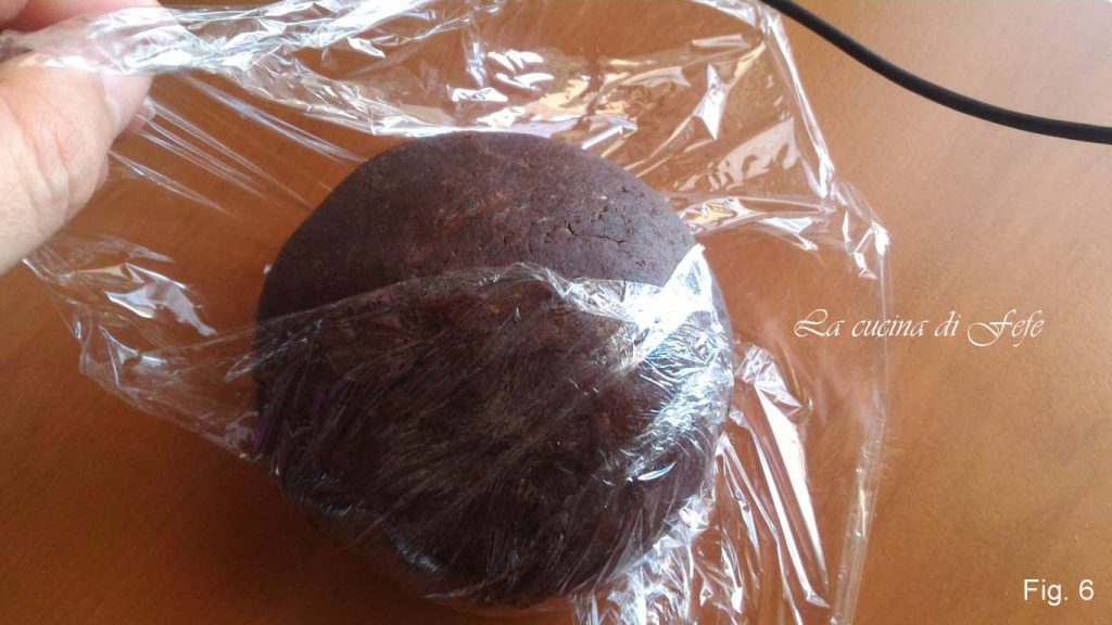 • Knead on a lightly floured work surface until you get a smooth and homogeneous ball. Cover with cling film and let rest for 30′ in the fridge.