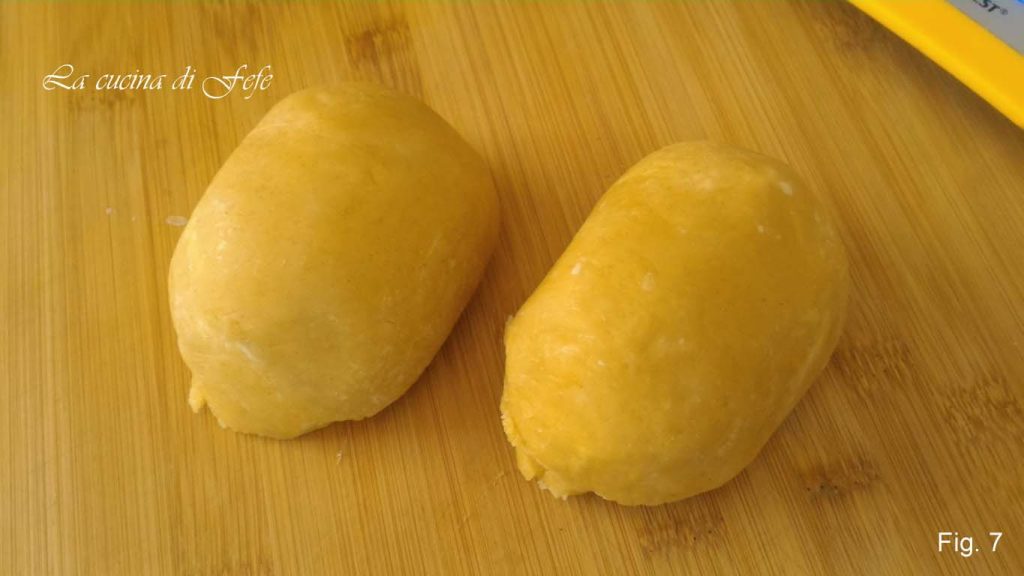 • Then add the egg beaten with sugar and a pinch of salt. Transfer to a lightly floured work surface until you get a smooth ball that you will cover with cling film and refrigerate for 30′.