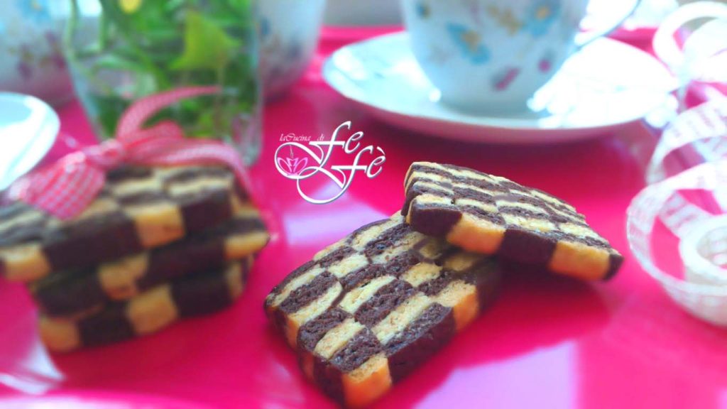 The checkerboard cookies are one of those classic homemade pastry recipes that offer great satisfaction. Although they are not a “quick and easy” preparation, the final result is incredibly spectacular and the taste reminds you of the famous industrial two-tone cookies, but with the genuineness of ingredients you choose yourself. Half vanilla and half cocoa, they are irresistibly tasty!