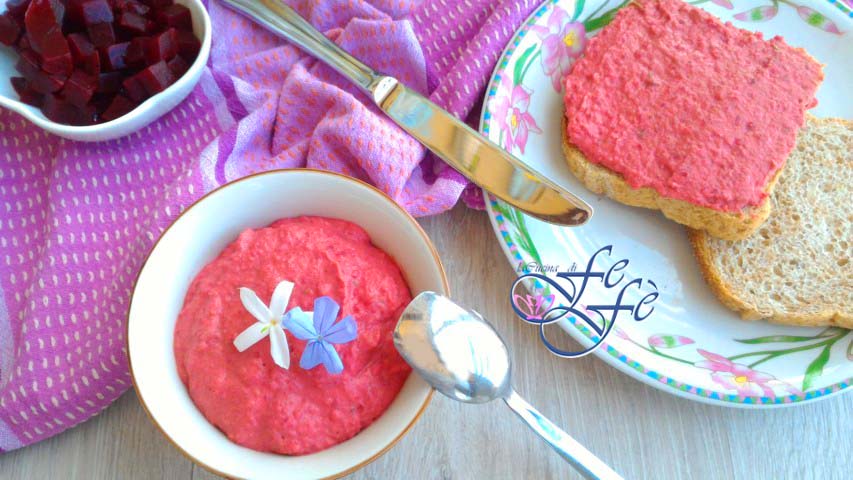 Do you want to surprise your guests with a very unusual and versatile sauce without spending time at the stove? Then chickpea and beet hummus is the way to go! I literally love it! Just look at the fantastic color that comes out once it’s prepared; it will be very scenic on your crostini, snacks, and everything else you can think of to fill within a buffet or appetizer. If this still hasn’t convinced you, just buy a package of chickpeas and a package of already steamed red beets at the supermarket, or if you have leftovers from a previous recipe like I did, even better, and you’re good to go!!! No pots, just a blender or a mixer, and in 5 minutes you will have a tasty and inviting version of the typical Middle Eastern sauce. I don’t think it can get any easier or quicker than this! But if this still hasn’t convinced you, let me say a few words about the healthy aspect of this sauce, because in addition to the undisputed and well-known properties of legumes (rich in minerals and vitamins), capable of controlling cholesterol and blood sugar levels, reducing the risk of diabetes, let’s not underestimate the red beets which are equal in richness of nutritional benefits to chickpeas and also stand out for their phytotherapeutic, purifying, remineralizing, and refreshing properties. So, have I convinced you?