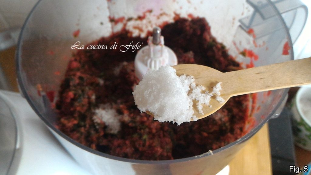 • Blend until you obtain a consistently smooth and homogeneous mixture. Salt and blend one last time (fig. 5).