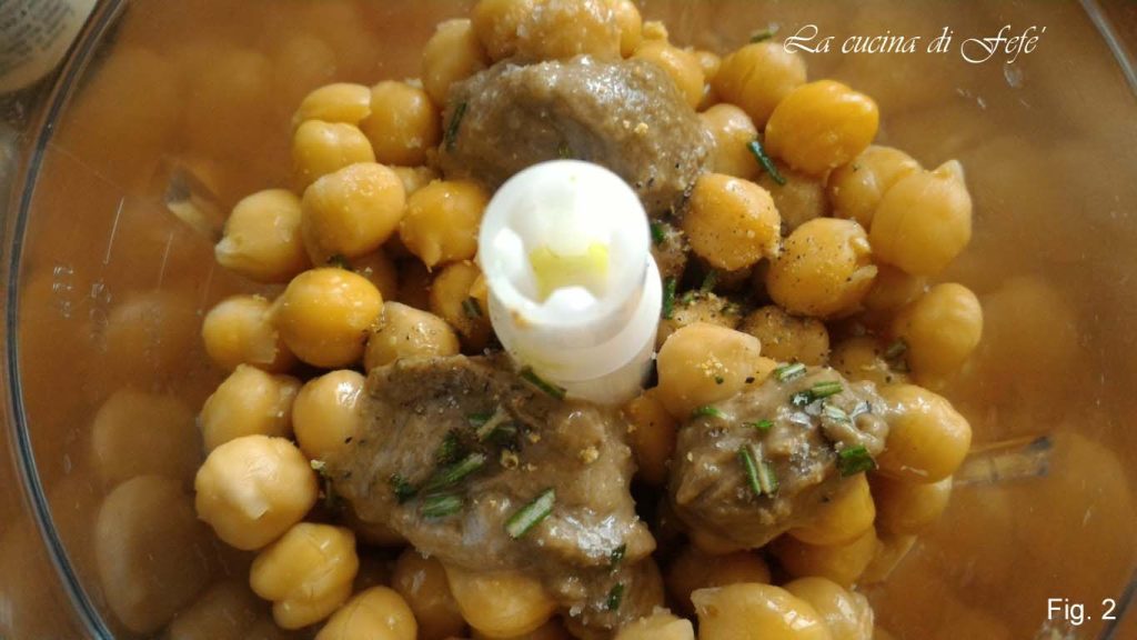 In the mixer bowl, pour the chickpeas drained from their water, setting aside 2-3 tablespoons.