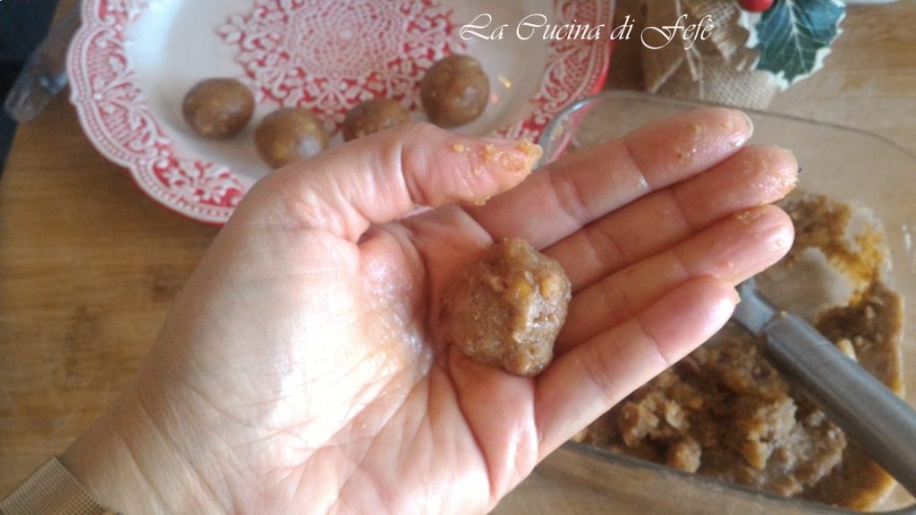 After this time, with the help of a melon baller, take small portions of the mixture the size of a walnut.