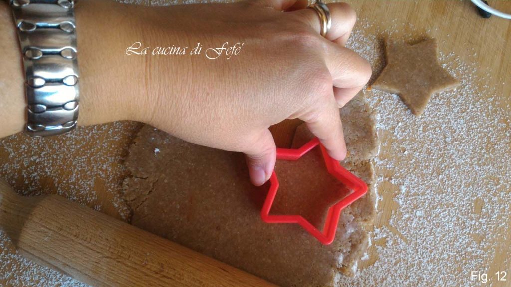 As you create your zimtsterne, place them on a baking tray previously lined with baking paper (fig. 13).