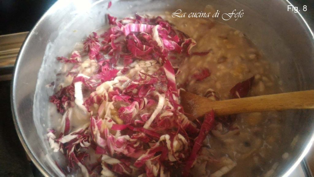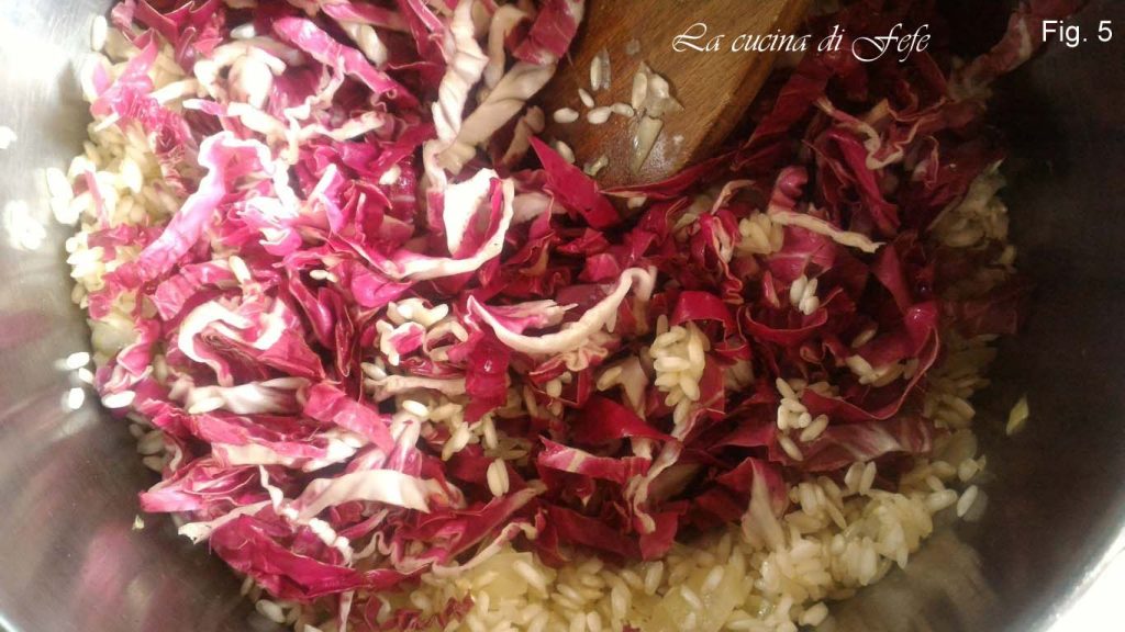 When there are about 5′ left before the cooking is complete, add the radicchio set aside.