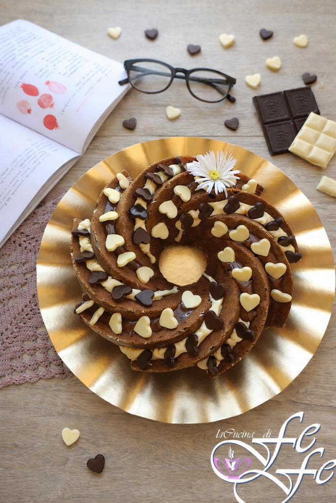 This dessert I am proposing today is created to celebrate Mother’s Day! I wanted to surprise her by making something delicious but satisfying my need not to overdo it with eggs or too fatty ingredients like mascarpone and ricotta. In short, delicious but always with an eye to health! And here is this super scenic and genuine dessert that will make you look great on all your special occasions! If you want, it will also be perfect for Valentine’s Day! For the mold, I relied on my now inseparable Nordic Ware mold, thanks to which I was able to glaze the grooves sublimely, creating a color contrast once the cake was baked! You can still opt for a simple mold and let the two ganaches drip from above as you prefer! The result will still be fabulous!!! As for the heart-shaped decorations, I want to point out that I made them by hand with the leftover glazes, but again, you can avoid complicating things by buying them ready-made in specialized stores. In this case, slightly reduce the doses and enjoy your snack!