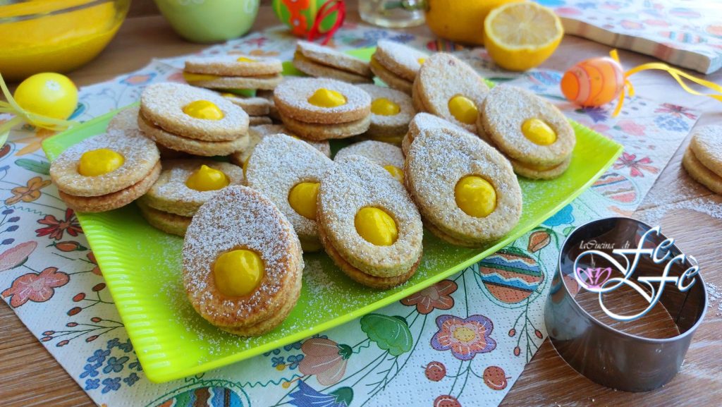 Just in time for preparing these fantastic cookies to serve as a show-stopping dessert for your Easter table! Adorable egg-shaped cookies, symbolizing this celebration of rebirth, very easy to make with a creamy filling that simulates the egg yolk! Thanks to the powdered sugar on top, the egg white effect is guaranteed! In its classic version, the filling is usually based on pastry cream that you can freely choose if you don’t like vegan alternatives. However, I will show you a more delicate egg-free version with a pinch of turmeric to ensure the same final result! Even the pastry, a bit more crumbly being almond flour-based, varies from the traditional version, but its spicy flavor is truly unmistakable! To be clear, it’s the same one I’ve used and proposed in many of my other cookies here on the blog, and I hope you like it. These cookies will be really fun to make, especially with your kids, and if you don’t have an egg-shaped cutter, I’ll leave a link at the end of the recipe to buy it!