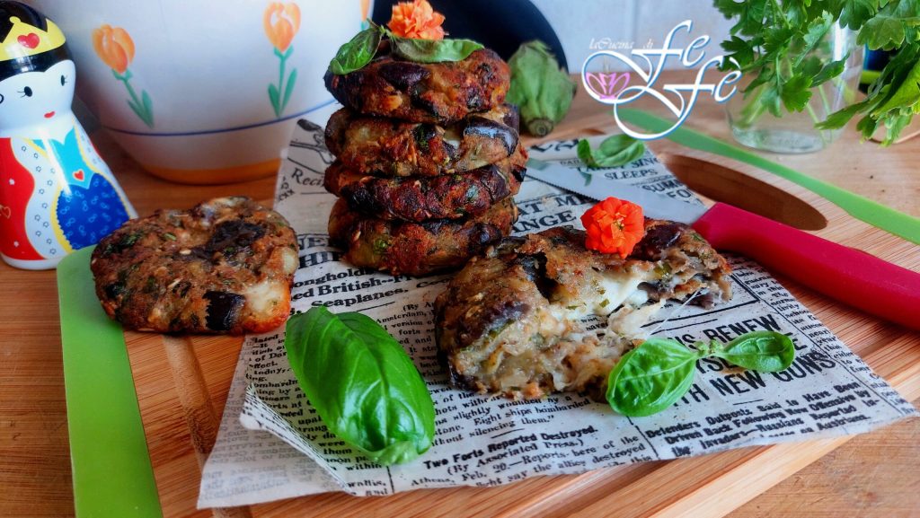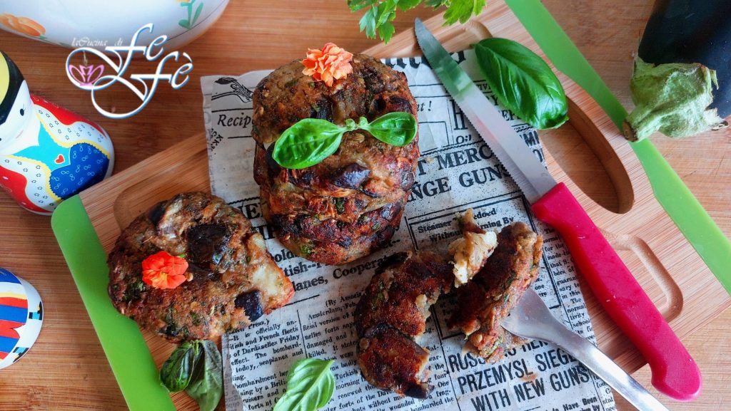 I confess that lately, I have reduced my daily calorie intake because my metabolism is slowing down with age, and staying in shape has become a very challenging task! The recipes I propose here on the blog are all very healthy, but unfortunately, healthy doesn’t often go hand in hand with dietary, so while browsing the web for inspiration, I came across these super-cheesy burgers that seem like meat but are actually made of eggplants! Moreover, they are egg-free and flour-free, a godsend for my purposes! I immediately wanted to replicate them, making some slight modifications to the original recipe, which, however, does not substantially change the final result. First, the type of cooking, obviously in my case in the oven, but if you prefer, you can cook these delicious burgers in a pan or air fryer! And then the addition of oats, an important source of proteins and essential amino acids, which I believe gives flavor, firmness, and character to the mix! They will be perfect for your quick lunches or dinners, a light and low-calorie vegetarian-style main course to enjoy paired with a fresh seasonal salad or whatever you desire!