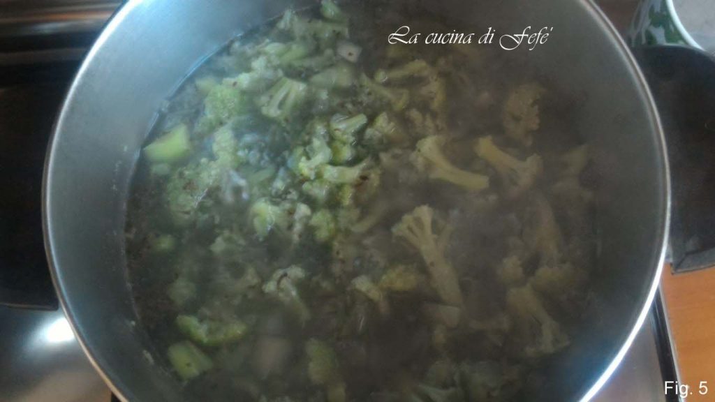 • Let cool slightly, removing any excess broth but without discarding it, and blend everything with an immersion blender until you achieve a creamy consistency (fig. 8).
