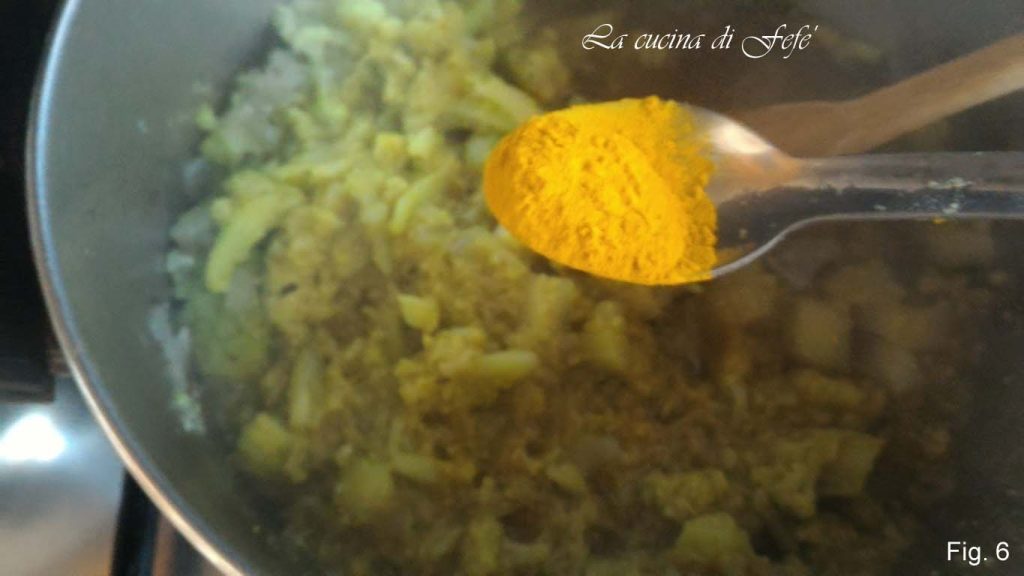 • Turn off the heat, adjust salt and pepper, then add the ground turmeric (fig. 6).